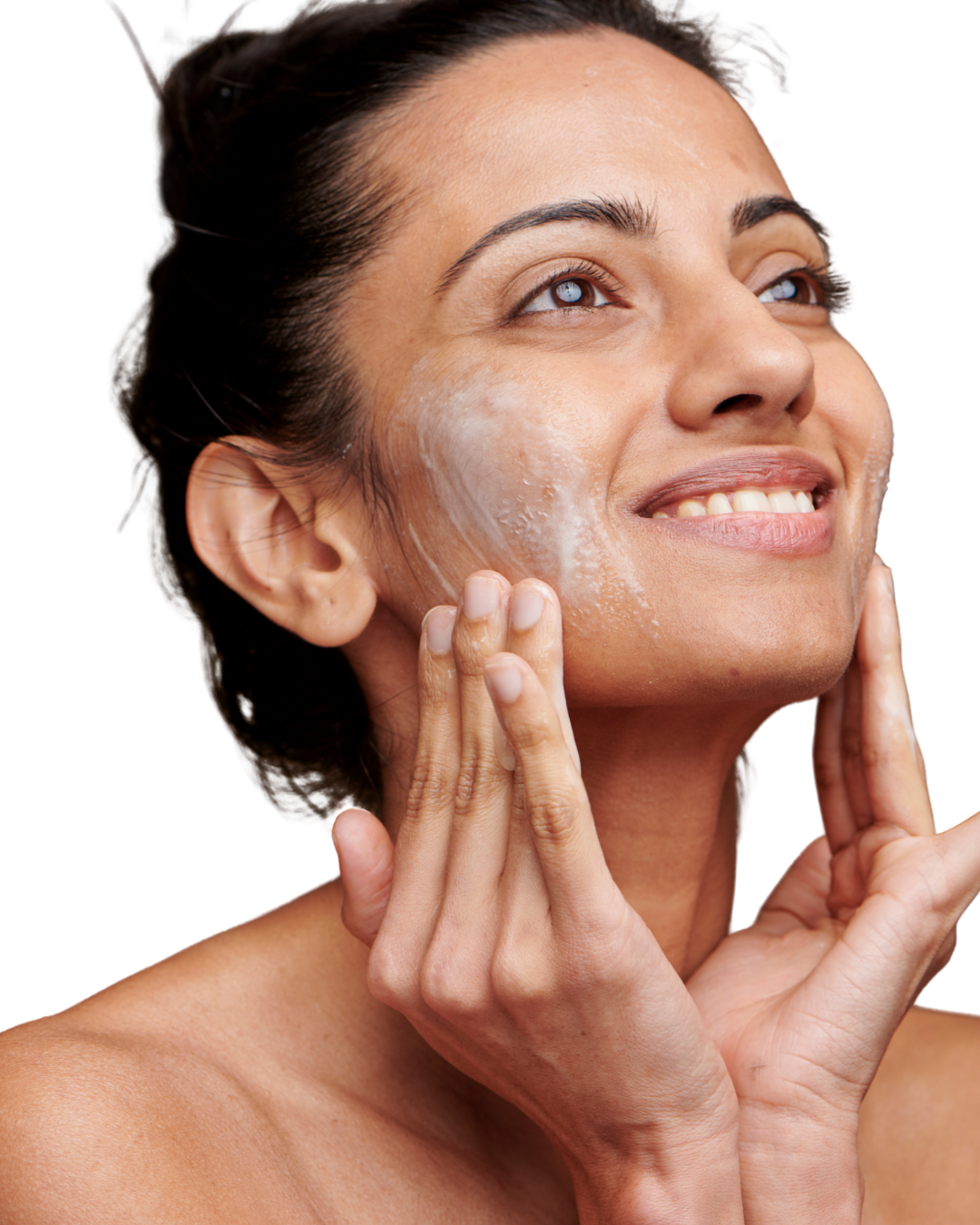 A thorough double cleanse to deeply clean the skin followed by steam and exfoliation to gently smooth texture.